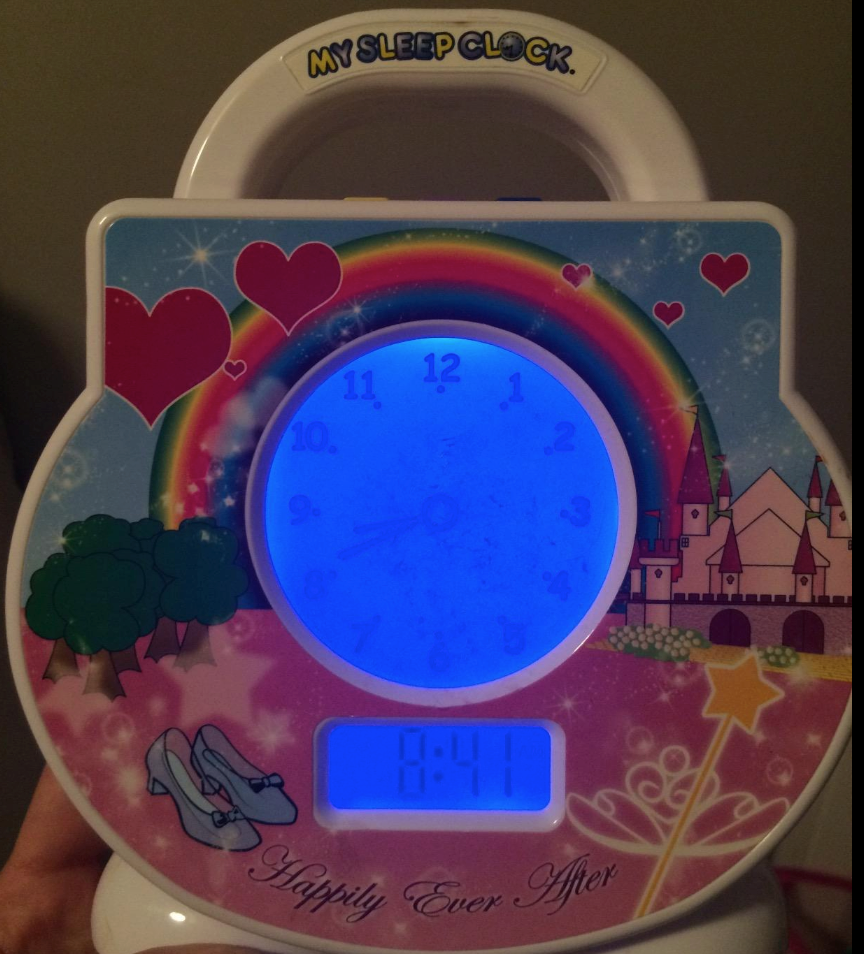 Efendim, bu saat uyku vakti mavi oluyor; uyanma zamani da sari oluyor. Cocuk diyelim gece uyandi, bakti ki saat daha mavi; o zaman uyumaya devam etmesi gerektigini ogreniyor. Eger ki saat sari olduysa, o zaman “yasasin, sabah oldu!” diye yataktan firlayabilecegini biliyor! Sanirim 2 yas civari bu saati hayatiniza dahil ederseniz, cocugun bunu Allah’in emriymiscesine kabul etme sansi daha yuksek oluyor. En azindan bizim icin ise yaradi ve bir sene sonra hala cok buyuk bir memnuniyetle saatimizi kullaniyoruz. Hafta ici sabahlari saatin sari olma ayari 6.45’e, hafta sonu da 7’ye ayarli. Gece mavi olmasi da aksam 8’e ayarli.